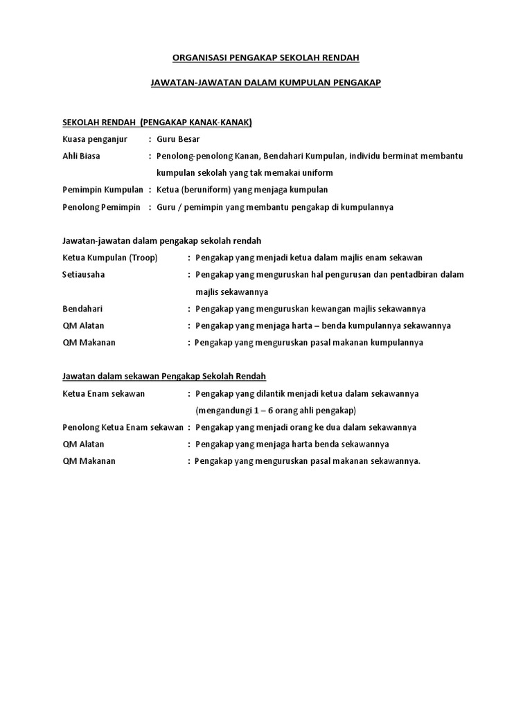 Kontijen maktab rendah sains mara (mrsm) tun ghazali shafie, kuala lipis. Sk datuk usman awang, 81900 kota tinggi, johor. Unit uniform pengakap biasanya adalah salah satu unit beruniform yang paling popular dikalangan murid sekolah rendah. 18 oktober 2002 haliza bin ahmad, setiausaha jawatankuasa penaja pergerakan pengakap, sekolah menengah kebangsaan raja tun uda, jalan tengah 11950 pulau pinang. Jadi kali ini sgo cuba kongsikan beberapa bahan yang diharap dapat membantu para guru terutama guru pengakap di sekolah rendah.