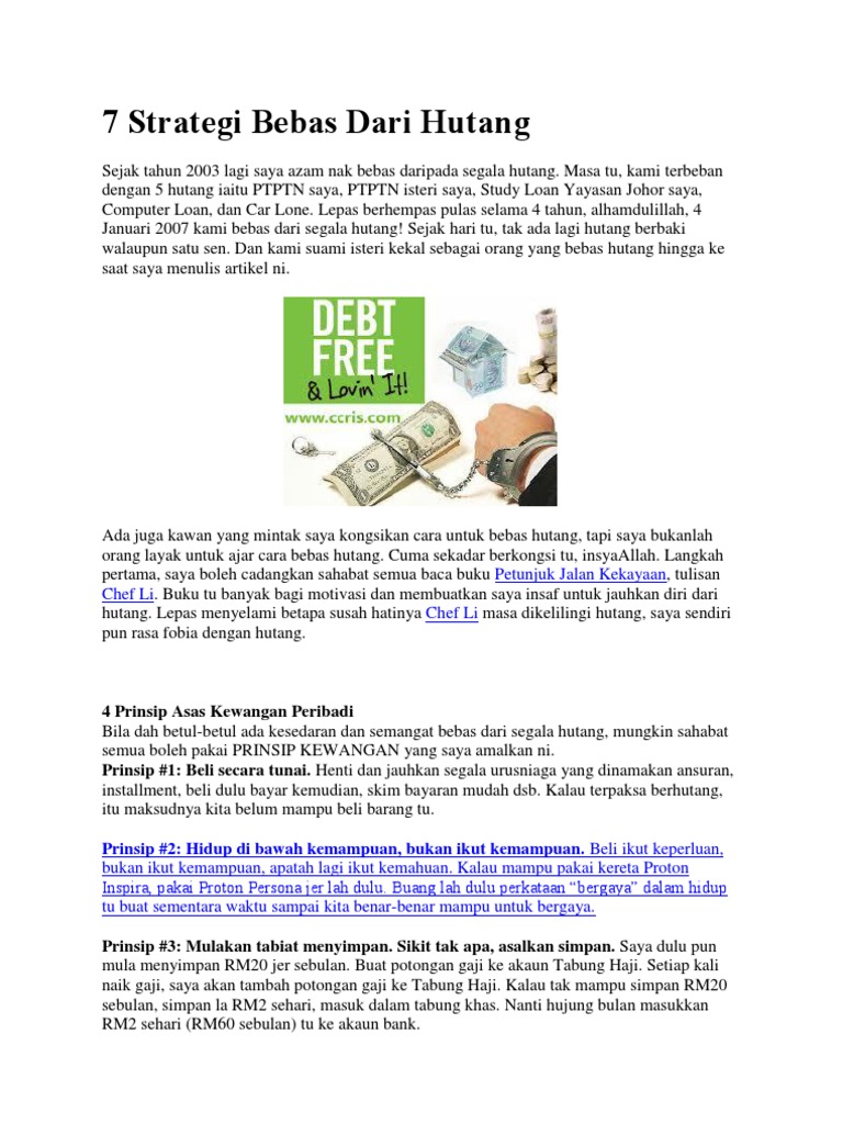 7 Strategi Bebas Dari Hutang from imgv2-2-f.scribdassets.com Berikut ini adalah cara agar anda bisa melunasinya. Hukum tidak mampu melunasi hutang sampai mati. Janganlah kita berani buat hutang, kalau tak berani uruskan hutang. Sudah merasa tak sanggup bayar atau takut di kemudian hari tak mampu lagi membayarnya? Terjerat hutang, penghuni rumah ricuh menolak eksekusi. Tapi, bukan berarti kita tidak bisa lepas darinya. Saya dah cari pemberi hutang tapi tak jawapan: Biasanya, jumlah pembayaran balik hutang korang tak boleh lebih 70% daripada pendapatan bersih korang.